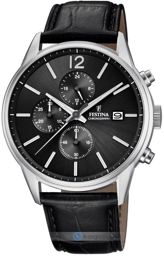 Zegarek męski F20284-4 marki Festina to dobre połączenie funkcjonalności a także ciekawego designu. Model ten w gamie pozostałych zegarków tego producenta występuje w kolekcji Festina Timeless Chronograph. Wysokiej jakości cyferblat zegarka pokryto czarnym kolorem. Godzina prezentowana jest w sposób analogowy co niezmiernie łatwo pozwala ją odczytać. Koperta w odcieniach koloru srebrnego szeroka jest na 43 mm oraz ma grubość 10 mm - w kształcie okrągłym.