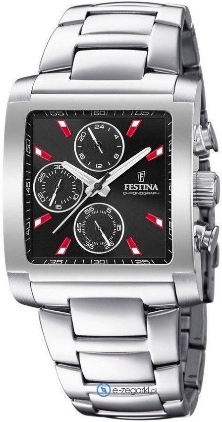 Festina tego brandu zapewne nie ma konieczności specjalnie prezentować. To znana i doceniana praktycznie na całym świecie marka zajmująca się produkcją zegarków, która narodziła się na początku XX wieku w szwajcarskiej miejscowości La Chaux-de-Fonds. Od momentu kiedy marka weszła w skład osobnej grupy Festina Group w latach 80-tych poprzedniego stulecia stała się nizwykle popularna. W dzisiejszych czasach zegarki Festina można nabyć w ponad pięćdziesięciu krajach na świecie. Markę Festina bardzo często można zobaczyć na różnego przekroju imprezach sportowych, np wyścigach kolarskich Tour de Pologne. Istotną cechą zgeraków Festina jest posiadanie specjalnego utwardzanego szkiełka mineralnego na które Festina udziela osobnej pięcio letniej gwarancji. Współcześnie twarzą marki jest znany i ceniony aktor Gerard Butler, można go zobaczyć w wielu reklamach właśnie z czasomierzem Festina.