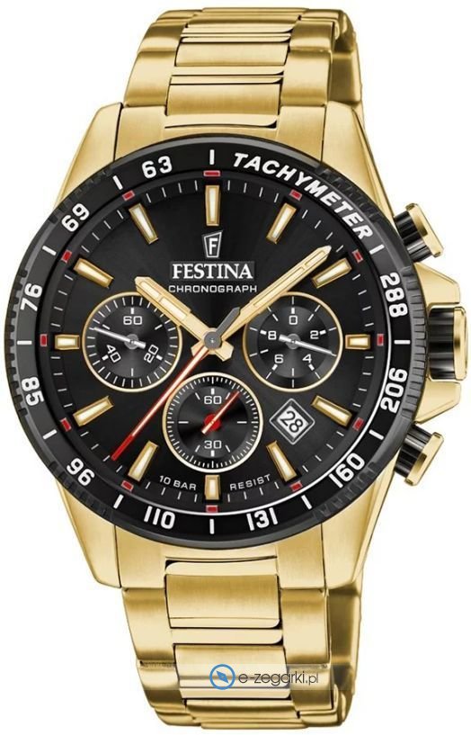 Zegarek męski F20634-5 marki Festina to stylowe połączenie funkcjonalności a także ciekawego wzornictwa. Model ten w gamie pozostałych zegarków tego producenta występuje w serii Festina Timeless Chronograph. Styl zapewnia wysokiej jakości cyferblat w kolorze czarnym. Zegarek ten pokazuje godzinę w formacie analogowym dzięki temu odczyt jest intuicyjny. Koperta została ozdobiona kolorem złotym szeroka jest na 45 mm oraz ma grubość 12 mm - ma okrągły kształt.