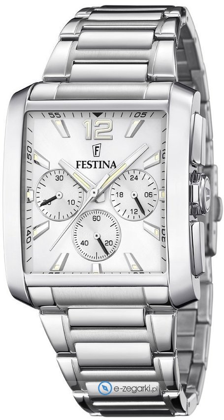 Zegarek męski F20635-1 marki Festina to stylowe połączenie funkcjonalności oraz ciekawego wzornictwa. Model ten zalicza się do serii Festina Timeless Chronograph. Nieschematyczny wygląd zegarka osiągnięto m.in. poprzez tarczę w kolorze srebrnym. Pokazana metodą analogową bieżąca godzina jest czytelna i prosta do sprawdzenia. Koperta jest w kolorze srebrnym szeroka jest na 38 mm oraz ma grubość 12 mm - cechuje się prostokątnym kształtem.
