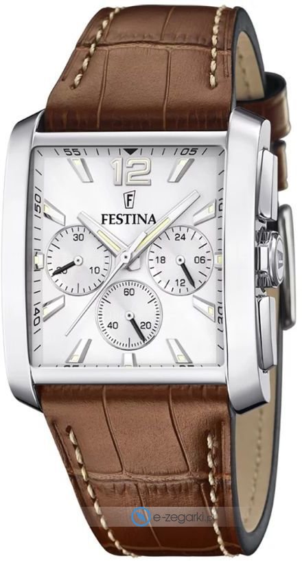 Festina tego brandu chyba nie ma potrzeby specjalnie prezentować. To znana i uznawana praktycznie na całym świecie marka zajmująca się produkcją czasomierzy, która narodziła się na początku XX wieku w szwajcarskiej miejscowości La Chaux-de-Fonds. Od czasu gdy marka weszła w skład nowej grupy Festina Group w latach 80-tych ubiegłego stulecia stała się bardzo zauważalna. Obecnie zegarki Festina można kupić w przeszło 50 krajach na świecie. Markę Festina bardzo często można dostrzec na różnego przekroju imprezach sportowych, np wyścigach kolarskich Tour de Pologne. Istotną cechą zgeraków Festina jest posiadanie specjalnie utwardzanego szkiełka mineralnego na które marka udziela osobnej 5 letniej gwarancji. Obecnie twarzą marki jest popularny i szanowany aktor Gerard Butler, można go zauważyć w wielu reklamach właśnie z chronometrem Festina.