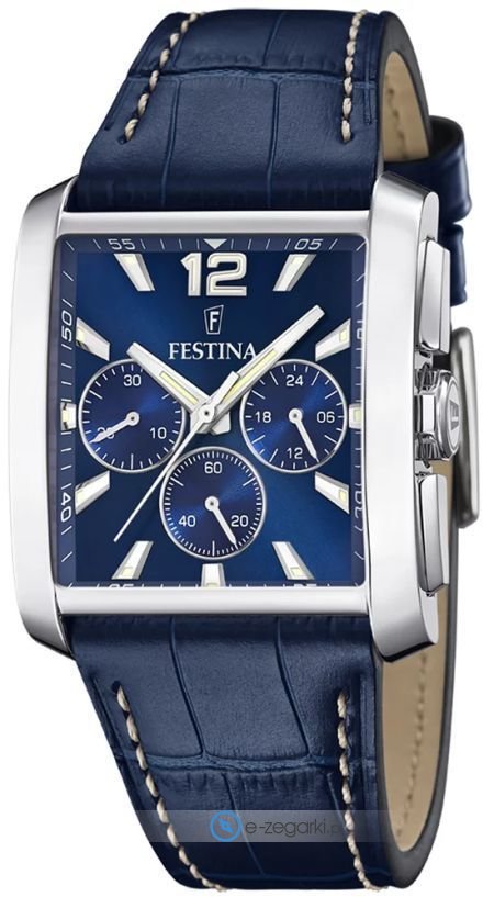 Festina F20636-2 - męski zegarek przeznaczony dla osób szukających zegarka z kolekcji Festina Timeless Chronograph. Styl zapewnia wysokiej jakości cyferblat w kolorze niebieskim. Zaprezentowana metodą analogową aktualna godzina jest czytelna i łatwa do odczytania. Koperta w barwach koloru srebrnego szeroka jest na 38 mm oraz ma grubość 12 mm - charakteryzuje się prostokątnym kształtem.