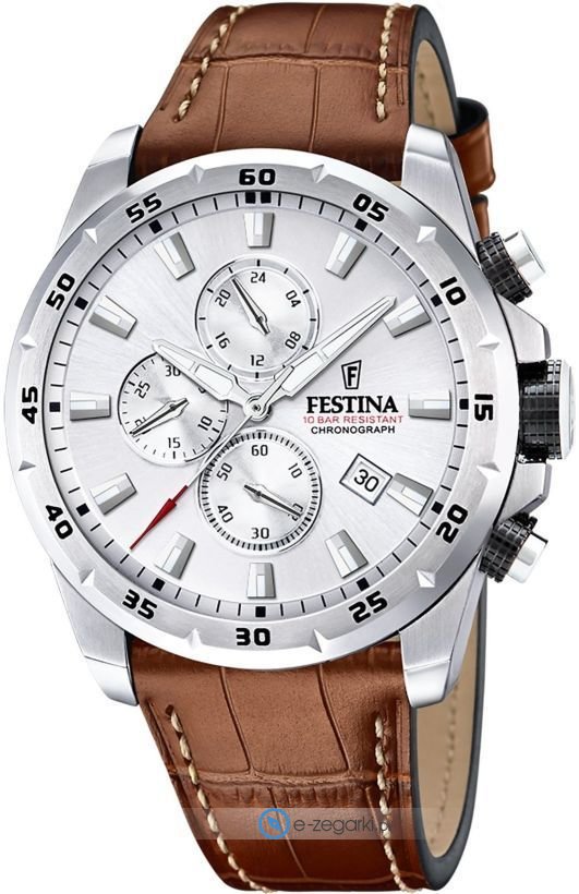 Zegarek męski F20692-1 marki Festina to dobre połączenie funkcjonalności a także modnego designu. Model ten w gamie innych zegarków tego producenta występuje w serii Festina Timeless Chronograph. Atrakcyjny wygląd czasomierza uzyskano także dzięki tarczy w kolorze srebrnym. Godzina pokazywana jest w sposób analogowy co intuicyjnie pozwala ją odczytać. Koperta jest w kolorze srebrnym szeroka jest na 45 mm oraz ma grubość 13 mm - w kształcie okrągłym.