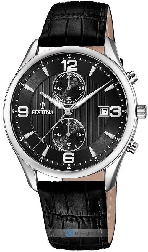 Model męski F6855-8 należy do kolekcji Festina Timeless Chronograph marki Festina. Ciekawy wygląd zegarka uzyskano m.in. poprzez tarczę w kolorze czarnym. Zegarek ten pokazuje godzinę w formacie analogowym dzięki temu odczyt jest intuicyjny. Koperta w odcieniach koloru srebrnego szeroka jest na 42 mm - posiada okrągły kształt.