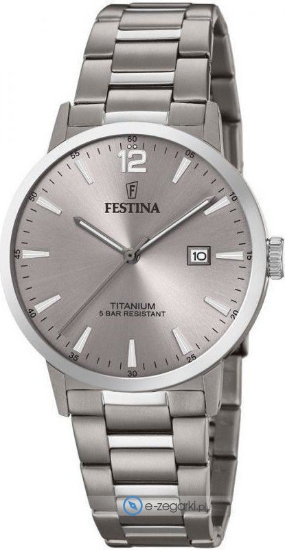 Festina F20435-2 to męski zegarek przeznaczony dla osób szukających zegarka z kolekcji Festina Titanium Date. Wysokiej trwałości tarczę zegarka pokryto szarym kolorem. Zaprezentowana metodą analogową bieżąca godzina jest czytelna i szybka do odczytania. Koperta w barwach koloru szarego szeroka jest na 40 mm oraz ma grubość 7 mm - posiada okrągły kształt.