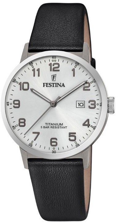 Zegarek męski F20471-1 marki Festina należy do kolekcji Festina Titanium Date. Ciekawy wygląd zegarka uzyskano m.in. poprzez cyferblat w kolorze srebrnym. Zegarek ten pokazuje godzinę w formacie analogowym dzięki temu odczyt jest bardzo łatwy. Koperta szeroka jest na 41 mm oraz ma grubość 9 mm - wyróżnia się okrągłym kształtem.
