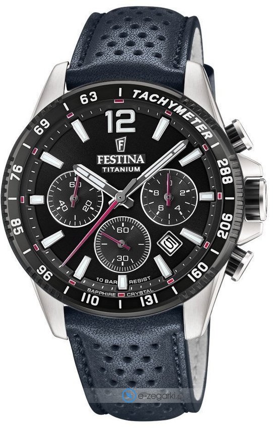 Zegarek męski F20521-5 marki Festina to idealne połączenie funkcjonalności a także modnego wzornictwa. Model ten pochodzi z kolekcji Festina Titanium Sport. Charakterystyczną budowę czasomierza uzyskano dzięki tarczy w kolorze czarnym. Zaprezentowana metodą analogową aktualna godzina jest czytelna i szybka do odczytania. Koperta została pokryta kolorem srebrnym szeroka jest na 45 mm oraz ma grubość 12 mm - ma okrągły kształt.