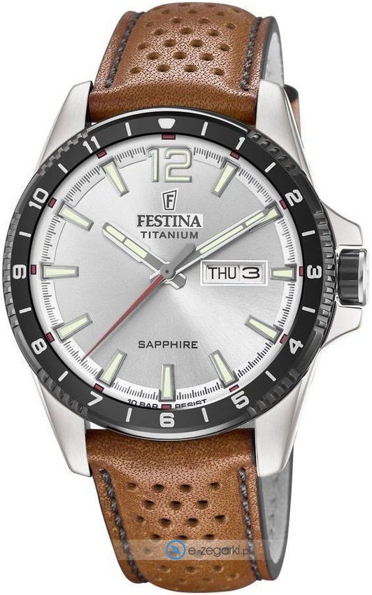 Zegarek męski F20530-1 marki Festina z serii Festina Titanium Sport. Niebanalną konstrukcję czasomierza osiągnięto z pomocą tarczy w kolorze srebrnym. Zaprezentowana metodą analogową bieżąca godzina jest czytelna i łatwa do odczytania. Koperta jest ozdobiona kolorem srebrnym szeroka jest na 43 mm oraz ma grubość 12 mm - w kształcie okrągłym.