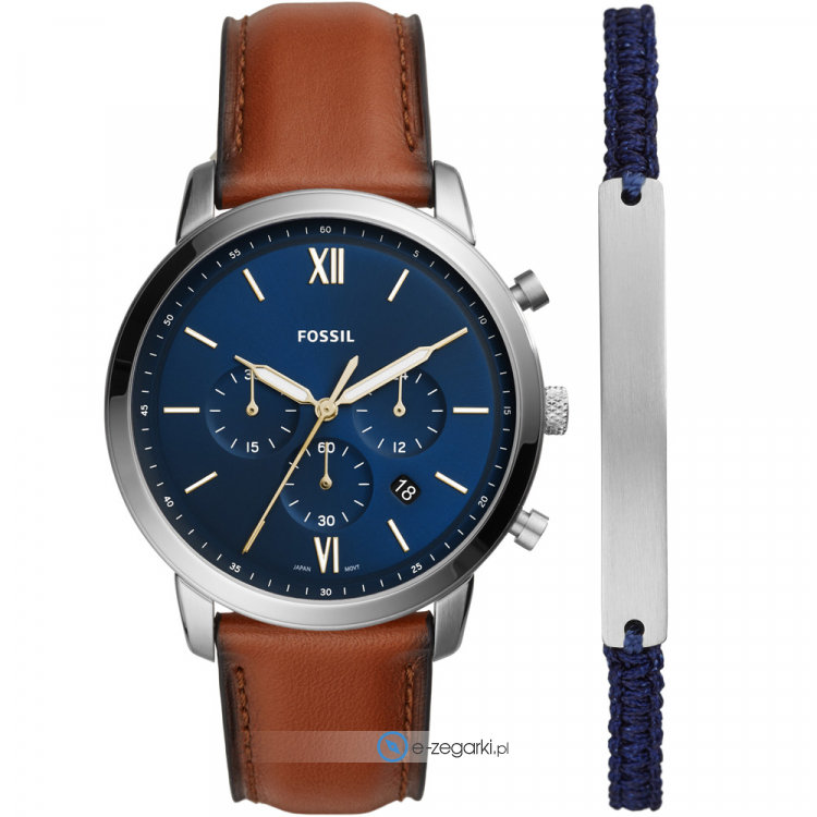 Męski zegarek Fossil FS5708SET to zegarek, który dzięki swemu wzornictwu zawsze będzie prezentował się dobrze. Charakterystyczną konstrukcję czasomierza uzyskano dzięki tarczy w kolorze granatowym. Pokazana metodą analogową aktualna godzina jest czytelna i szybka do sprawdzenia. Koperta jest w kolorze srebrnym szeroka jest na 44 mm oraz ma grubość 12 mm - posiada okrągły kształt.