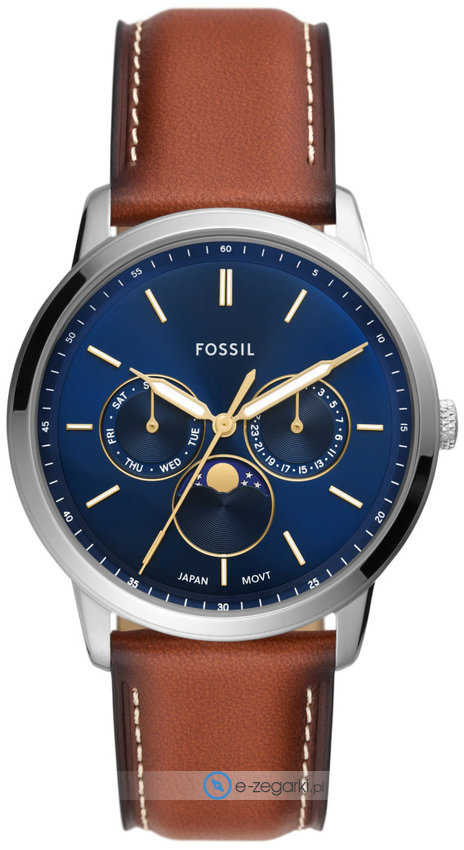 Model FS5903 marki Fossil to stylowy zegarek naręczny męski, który posiada pomysłowe rozwiązania oraz funkcje. Charakter zapewnia wysokiej klasy cyferblat w kolorze niebieskim. Aktualna godzina pokazywana jest w sposób analogowy co niezmiernie łatwo pozwala ją odczytać. Koperta w barwach koloru srebrnego szeroka jest na 42 mm - cechuje się okrągłym kształtem.