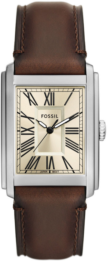 Model FS6012 marki Fossil to stylowy zegarek naręczny męski, który posiada ciekawe rozwiązania i funkcje. Wysokiej trwałości tarczę zegarka pokryto beżowym kolorem. Zaprezentowana metodą analogową bieżąca godzina jest czytelna i szybka do odczytania. Koperta w odcieniach koloru srebrnego szeroka jest na 30 mm oraz ma grubość 9 mm - ma prostokątny kształt.
