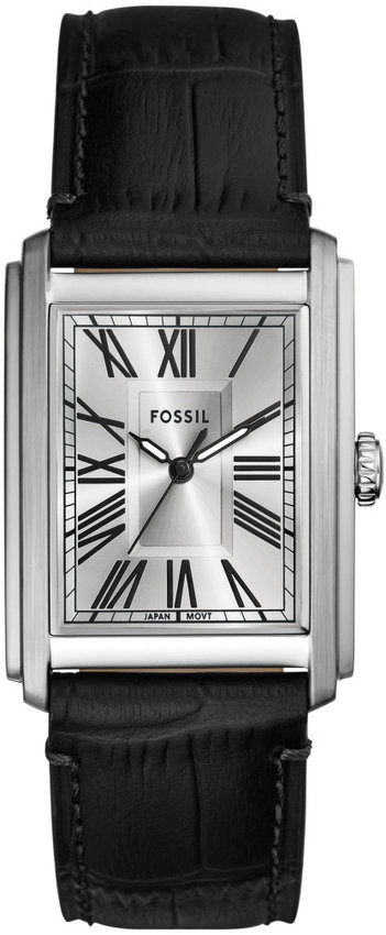 Zegarek męski FS6078 marki Fossil to dobre połączenie funkcjonalności a także ciekawego wzornictwa. Charakter zapewnia wysokiej jakości cyferblat w kolorze srebrnym. Aktualna godzina zaprezentowana jest w sposób analogowy co intuicyjnie pozwala ją odczytać. Koperta jest w kolorze srebrnym szeroka jest na 30 mm oraz ma grubość 9 mm - charakteryzuje się prostokątnym kształtem.