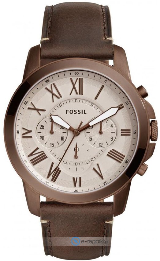 Zegarek męski FS5344 z serii Fossil Grant marki Fossil. Ciekawy wygląd zegarka uzyskano również dzięki tarczy w kolorze jasnym. Koperta jest w kolorze brązowym szeroka jest na 44 mm oraz ma grubość 12 mm - ma okrągły kształt.