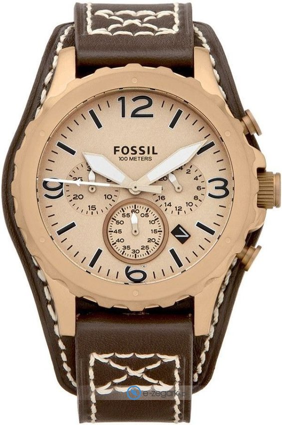 Zegarek męski JR1495 marki Fossil to stylowe połączenie funkcjonalności a także modnego designu. Styl zapewnia wysokiej jakości cyferblat w kolorze złotym. Godzina prezentowana jest w sposób analogowy co niezmiernie łatwo pozwala ją odczytać. Koperta w odcieniach koloru złotego szeroka jest na 46 mm oraz ma grubość 14 mm - w kształcie okrągłym.
