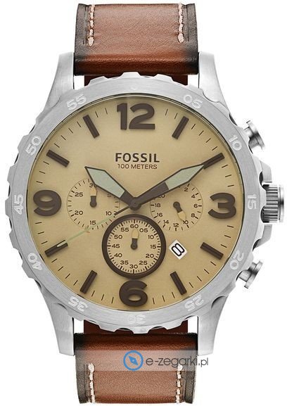 Męski zegarek Fossil JR1503 to zegarek, który dzięki swemu wzornictwu zawsze będzie prezentował się dobrze. Ciekawą budowę zegarka uzyskano z pomocą tarczy w kolorze brązowym. Zegarek ten prezentuje aktualny czas w formacie analogowym dzięki temu odczyt jest bardzo łatwy. Koperta w barwach koloru srebrnego szeroka jest na 50 mm oraz ma grubość 13 mm - posiada okrągły kształt.