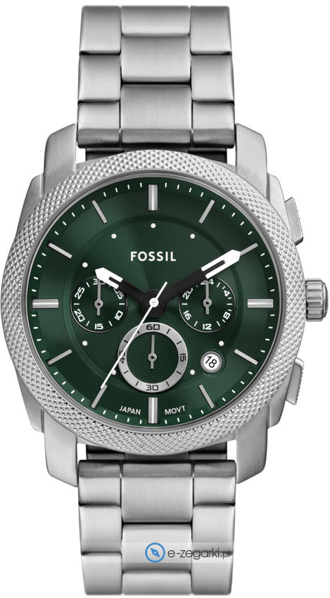 Zegarek FS6079 marki Fossil to gustowny zegarek naręczny męski, który jest wyposażony w ciekawe rozwiązania i funkcje. Model ten występuje w kolekcji Fossil Machine. Charakterystyczną stylistykę zegarka uzyskano dzięki tarczy w kolorze zielonym. Zegarek ten prezentuje aktualny czas w formacie analogowym dzięki czemu odczyt jest bardzo łatwy. Koperta jest pokryta kolorem srebrnym szeroka jest na 42 mm - cechuje się okrągłym kształtem.