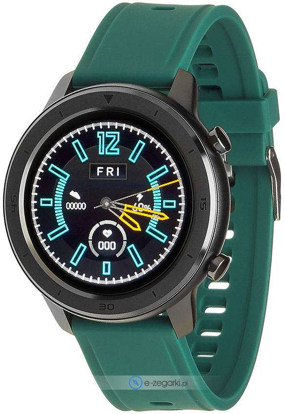 Zegarek męski 5903246286540 Smartwatch Garett Master RT zielony marki Garett to ciekawa propozycja dla osób ceniących sobie dbałość o szczegóły jak również bezproblemowe działanie mechanizmów. Pokazana metodą cyfrową aktualna godzina jest czytelna i łatwa do sprawdzenia. Koperta jest ozdobiona kolorem zielonym szeroka jest na 45 mm oraz ma grubość 12 mm - w kształcie okrągłym.