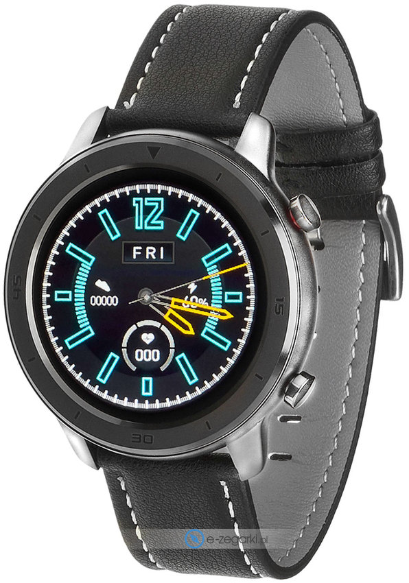 Męski zegarek Garett 5903246286595 Smartwatch Garett Master RT czarno-szary, skórzany to zegarek, który dzięki swemu wzornictwu zawsze będzie prezentował się dobrze. Aktualna godzina przedstawiona jest w sposób cyfrowy co niezmiernie łatwo pozwala ją odczytać. Koperta jest w kolorze srebrnym szeroka jest na 47 mm oraz ma grubość 12 mm - wyróżnia się okrągłym kształtem.