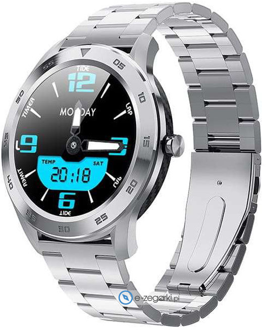 Wytrzymała bransoleta jest w kolorze srebrnym wykonana ze stali nierdzewnej zapewnia dużo lepszą jakość i trwałość. Dzięki wbudowanemu datownikowi masz możliwość sprawdzenia aktualnej daty. Możliwość ustawienia alarmu o wyznaczonej porze.