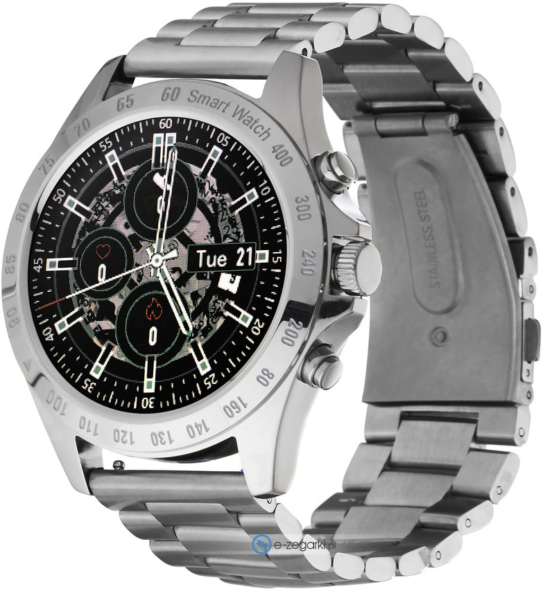 Zegarek męski 5903991665614 Smartwatch Garett Men Style srebrny, stalowy marki Garett to ciekawa propozycja dla osób ceniących sobie dbałość o detale oraz bezawaryjne funkcjonowanie mechanizmów. Zegarek ten pokazuje aktualny czas w formacie cyfrowym dzięki czemu odczyt jest bezproblemowy. Koperta jest pokryta kolorem srebrnym szeroka jest na 45 mm oraz ma grubość 11 mm - w kształcie okrągłym.