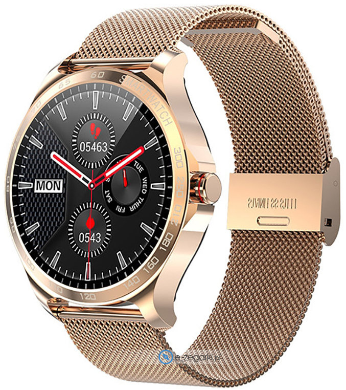 Smartwatch - wykorzystanie nowoczesnej technologii Smart powoduje, że model ten ma zdecydowanie więcej możliwości niż tradycyjny zegarek, wszystko dzięki integracji z telefonem. Po zainstalowaniu specjalnej aplikacji producenta w smartphonie mamy do dyspozycji dodatkowe opcje zegarka. Model 5904238480786 Smartwatch Garett Sport Factory RT złoty, stalowy posiada mechanizm zasilany akumulatorem ładowanym w dowolnym momencie za pomocą ładowarki.