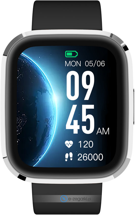 Zegarek męski 5904238484890 Smartwatch Garett GRC STYLE srebrno-czarny marki Garett to dobre połączenie funkcjonalności a także modnego wzornictwa. Zegarek ten prezentuje aktualny czas w formacie cyfrowym dzięki czemu odczyt jest bardzo łatwy. Koperta została pokryta kolorem srebrnym szeroka jest na 41 mm oraz ma grubość 13 mm - ma prostokątny kształt.