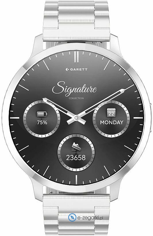 Zegarek męski 5904238485163 Smartwatch Garett Edge srebrny solid marki Garett to idealny dodatek dla mężczyzny ceniącego połączenie nowoczesnej technologii i ponadczasowego designu. Ten inteligentny zegarek, pochodzący od polskiego producenta, łączy w sobie funkcjonalność smartwatcha z elegancją klasycznego czasomierza. Wykonany z dbałością o detale, prezentuje się niezwykle stylowo na męskim nadgarstku. Pokazana w formie cyfrowej godzina jest niezwykle czytelna, a solidna, srebrna bransoleta dodaje mu charakteru. Ten polski smartwatch to doskonały wybór dla każdego, kto szuka urządzenia, które sprawdzi się zarówno podczas treningu, jak i w codziennych sytuacjach. Dzięki niemu, będziesz zawsze na bieżąco, a jednocześnie podkreślisz swój indywidualny styl. Urządzenie posiada segment Smart umożliwiający połączenie zegarka ze smartfonem i obsługę dodatkowych funkcji z pomocą specjalnej aplikacji zainstalowanej w telefonie. Zegarek 5904238485163 Smartwatch Garett Edge srebrny solid posiada mechanizm zasilany akumulatorem doładowywanym w dowolnym momencie za pomocą ładowarki.