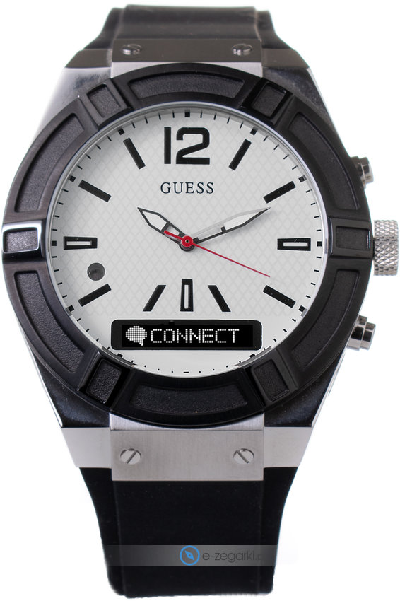 Wśród innych cech zegarka Guess C0001G4 można wyróżnić bluetooth z pomocą którego sparujemy zegarek ze smartwatchem.
