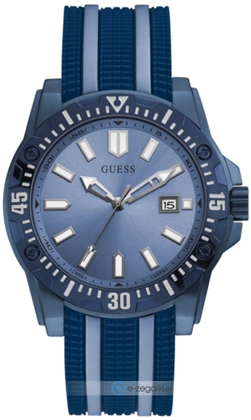 Model GW0055G2 marki Guess to stylowy zegarek naręczny męski, który wyposażono w ciekawe rozwiązania oraz funkcje. Ciekawy wygląd zegarka osiągnięto także dzięki tarczy w kolorze niebieskim. Godzina zaprezentowana jest w sposób analogowy co intuicyjnie pozwala ją odczytać. Koperta jest w kolorze niebieskim szeroka jest na 46 mm oraz ma grubość 11 mm - charakteryzuje się okrągłym kształtem.