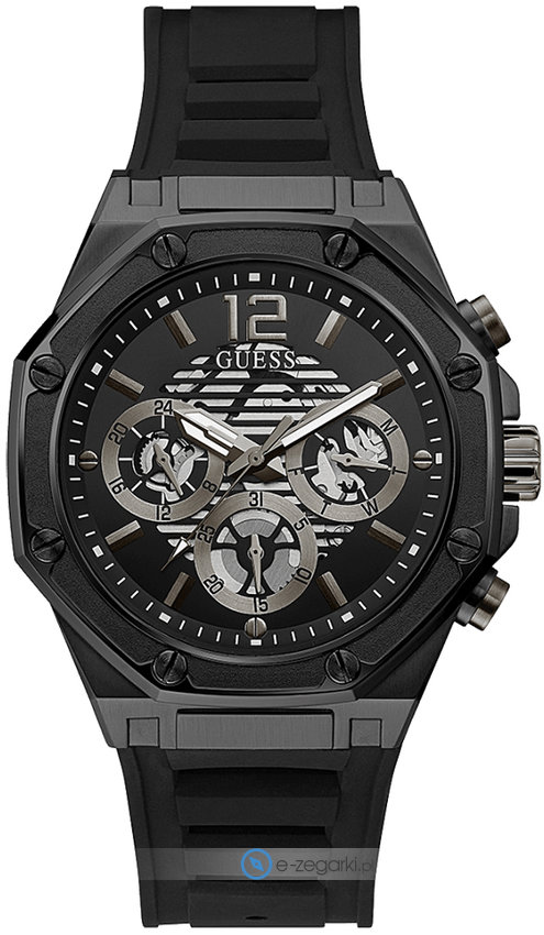Model GW0263G4 marki Guess to elegancki zegarek naręczny męski, który posiada pomysłowe rozwiązania oraz funkcje. Cyferblat zegarka jest w kolorze czarnym. Zegarek ten pokazuje godzinę w formacie analogowym dzięki czemu odczyt jest bezproblemowy. Koperta w barwach koloru czarnego szeroka jest na 44 mm oraz ma grubość 11 mm - wyróżnia się okrągłym kształtem.
