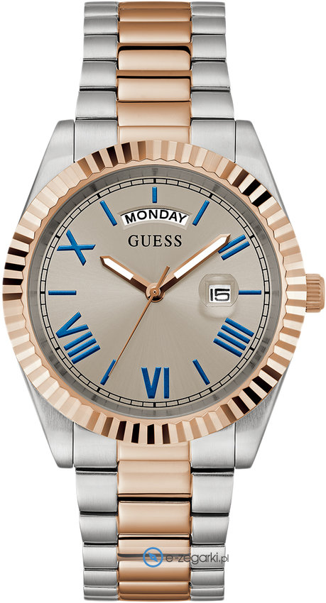 Guess czyli marka znana każdemu. Jest to światowy brand rozpoznawalny niemal we wszystkich zakątkach świata. Czasomierze tej marki to cząstka luksusu oraz elegancji na ręku właściciela, zegarki te dzięki niepowtarzalnym akcentom podkreślają swój styl, cechują się ponadto gustowną elegancją i funkcjonalnością na najwyższym poziomie. Zegarki Guess to pewność ponadprzeciętnego stylu i wysokiej jakości wykonania, która cechuje tylko największe światowe marki. Model ten jest w promocyjnej cenie ze względu na aktualną akcję Outlet dla zegarków Guess.