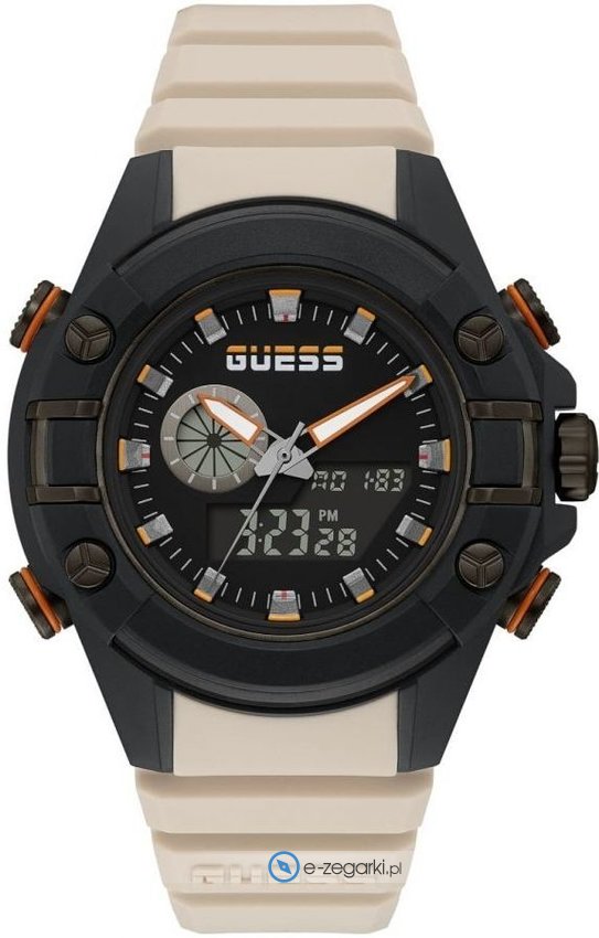 Zegarek męski GW0269G1 marki Guess to ciekawa propozycja dla ludzi ceniących sobie dbałość o detale oraz bezproblemowe funkcjonowanie mechanizmów. Styl zapewnia wysokiej jakości cyferblat w kolorze czarnym. Pokazana metodą analogowo - cyfrową aktualna godzina jest czytelna i szybka do sprawdzenia. Koperta jest ozdobiona kolorem czarnym szeroka jest na 47 mm - w kształcie okrągłym.
