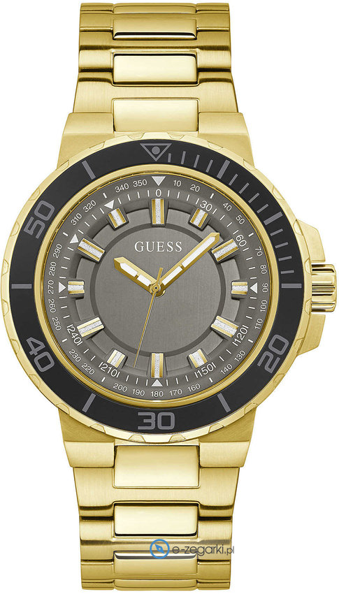 Model GW0426G2 marki Guess to gustowny zegarek naręczny męski, który posiada ciekawe rozwiązania oraz funkcje. Niebanalny wygląd czasomierza osiągnięto również dzięki tarczy w kolorze szarym. Zegarek ten pokazuje aktualny czas w formacie analogowym dzięki temu odczyt jest bezproblemowy. Koperta w odcieniach koloru złotego szeroka jest na 44 mm oraz ma grubość 10 mm - w kształcie okrągłym.