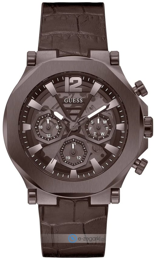 Zegarek męski GW0492G2 marki Guess to dobra pozycja dla osób ceniących sobie dbałość o detale a także bezawaryjne funkcjonowanie mechanizmów. Charakter zapewnia wysokiej klasy tarcza w kolorze czarnym. Godzina pokazywana jest w sposób analogowy co niezmiernie łatwo pozwala ją odczytać. Koperta została ozdobiona kolorem brązowym szeroka jest na 46 mm - cechuje się okrągłym kształtem.