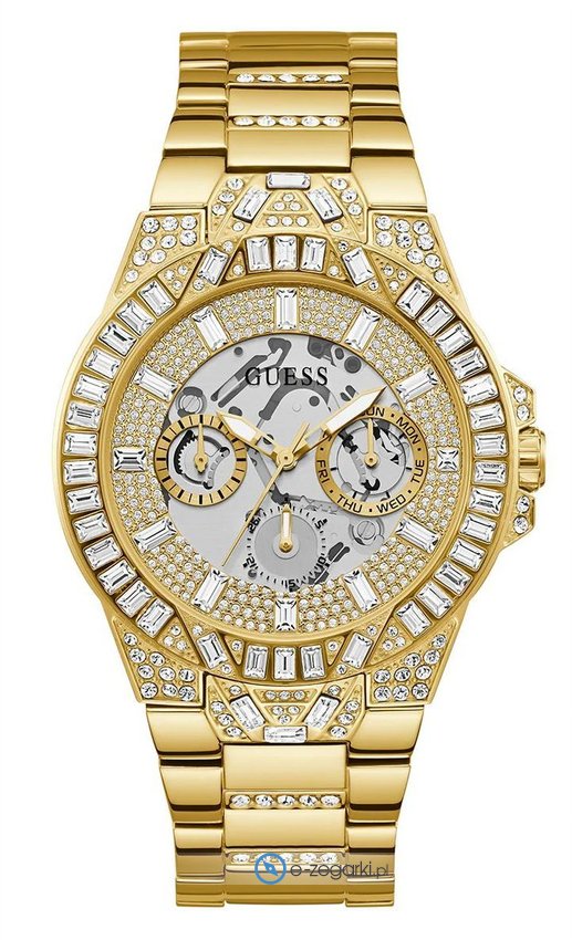 Zegarek męski GW0516G2 marki Guess to ciekawa pozycja dla ludzi ceniących sobie dbałość o szczegóły a także bezawaryjne działanie mechanizmów. Niebanalną budowę czasomierza uzyskano dzięki tarczy w kolorze złotym. Zegarek ten pokazuje godzinę w formacie analogowym dzięki temu odczyt jest intuicyjny. Koperta w barwach koloru złotego szeroka jest na 44 mm - w kształcie okrągłym.