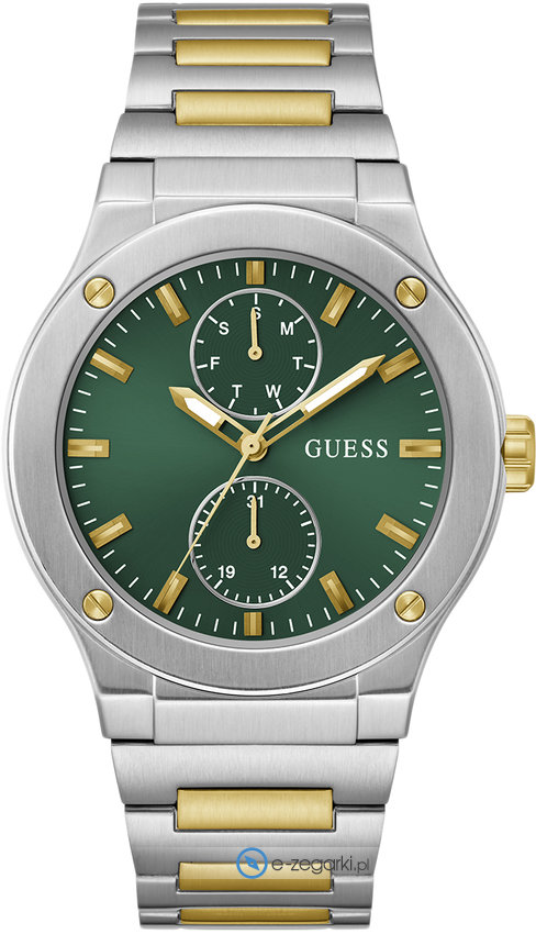 Zegarek męski GW0795G1 marki Guess to dobra pozycja dla ludzi ceniących sobie dbałość o detale oraz sprawne funkcjonowanie mechanizmów. Charakterystyczny wygląd czasomierza osiągnięto także dzięki tarczy w kolorze zielonym. Aktualna godzina zaprezentowana jest w sposób analogowy co bez trudu pozwala ją odczytać. Koperta jest w kolorze srebrnym szeroka jest na 43 mm oraz ma grubość 11 mm - w kształcie okrągłym.