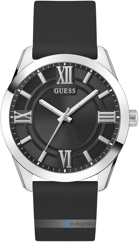 Zegarek męski GW0894G1 marki Guess to idealne połączenie funkcjonalności i modnego designu. Ciekawą budowę czasomierza uzyskano dzięki tarczy w kolorze czarnym. Zegarek ten pokazuje godzinę w formacie analogowym dzięki czemu odczyt jest bezproblemowy. Koperta jest w kolorze srebrnym szeroka jest na 44 mm oraz ma grubość 10 mm - ma okrągły kształt.