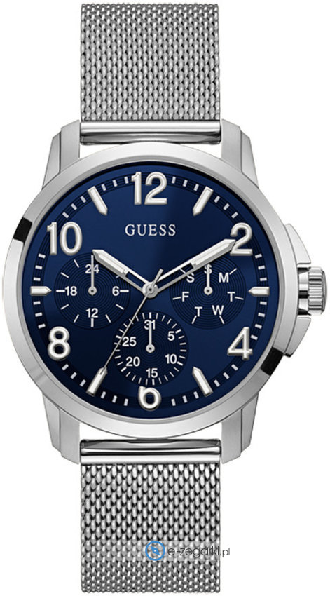 Zegarek męski Guess W1040G1 to propozycja dla mężczyzn ceniących sobie amerykańską innowacyjność i oryginalny wygląd. Ten czasomierz to połączenie funkcjonalności i wyrazistego wzornictwa, które przyciąga wzrok. Niebieski cyferblat prezentuje aktualną godzinę w sposób analogowy, zapewniając czytelność i łatwość odczytu. Koperta w kolorze srebrnym, o szerokości 43 mm, charakteryzuje się okrągłym kształtem, idealnie pasującym na męski nadgarstek.