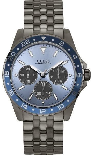 Zegarek męski W1107G5 marki Guess to ciekawa pozycja dla ludzi ceniących sobie dbałość o detale a także bezproblemowe funkcjonowanie mechanizmów. Ciekawy wygląd zegarka osiągnięto także dzięki tarczy w kolorze niebieskim. Pokazana metodą analogową bieżąca godzina jest czytelna i prosta do sprawdzenia. Koperta została pokryta kolorem szarym szeroka jest na 44 mm oraz ma grubość 10.9 mm - cechuje się okrągłym kształtem.