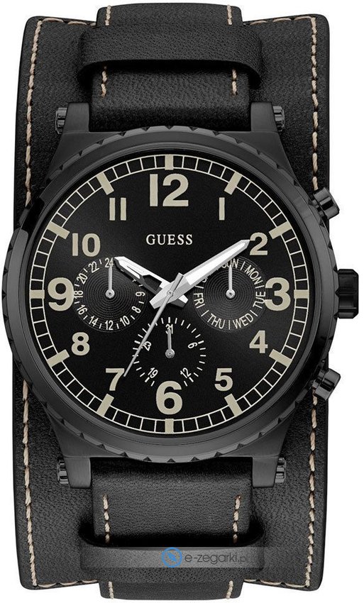 Model W1162G2 marki Guess to elegancki zegarek naręczny męski, który wyposażono w pomysłowe rozwiązania i funkcje. Styl zapewnia wysokiej klasy tarcza w kolorze czarnym. Koperta jest w kolorze czarnym szeroka jest na 44 mm oraz ma grubość 12 mm - ma okrągły kształt.
