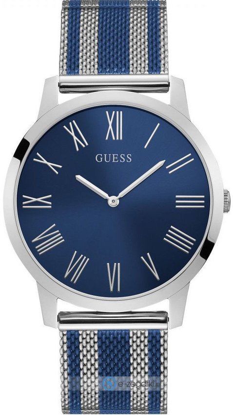Model W1179G1 marki Guess to gustowny zegarek naręczny męski, który posiada ciekawe rozwiązania oraz funkcje. Nieschematyczny wygląd czasomierza uzyskano dzięki tarczy w kolorze granatowym. Koperta w barwach koloru srebrnego szeroka jest na 44 mm oraz ma grubość 9 mm - w kształcie okrągłym.