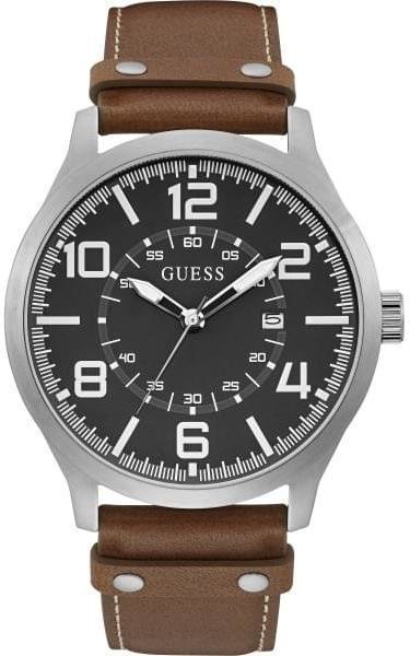 Zegarek męski W1301G1 marki Guess to dobre połączenie funkcjonalności i ciekawego designu. Styl zapewnia wysokiej klasy tarcza w kolorze czarnym. Zaprezentowana metodą analogową aktualna godzina jest czytelna i prosta do sprawdzenia. Koperta w odcieniach koloru srebrnego szeroka jest na 48 mm oraz ma grubość 10.8 mm - w kształcie okrągłym.