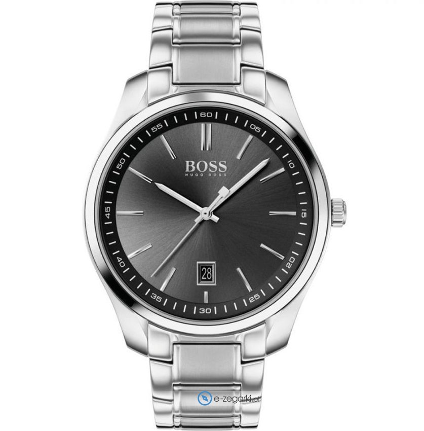Męski zegarek Hugo Boss 1513730 to zegarek, który dzięki swemu wzornictwu zawsze będzie prezentował się dobrze. Nieschematyczny wygląd zegarka uzyskano także dzięki tarczy w kolorze czarnym. Aktualna godzina przedstawiona jest w sposób analogowy co niezmiernie łatwo pozwala ją odczytać. Koperta w odcieniach koloru szarego szeroka jest na 42 mm - wyróżnia się okrągłym kształtem.