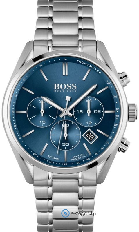 Zegarek męski 1513818 marki Hugo Boss to idealne połączenie funkcjonalności oraz modnego designu. Cyferblat zegarka jest w kolorze niebieskim. Zegarek ten prezentuje godzinę w formacie analogowym dzięki czemu odczyt jest bezproblemowy. Koperta w odcieniach koloru srebrnego szeroka jest na 44 mm oraz ma grubość 12 mm - charakteryzuje się okrągłym kształtem.