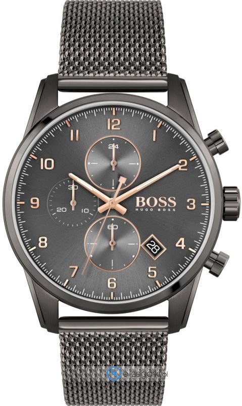 Zegarek męski 1513837 marki Hugo Boss to ciekawa propozycja dla ludzi ceniących sobie dbałość o szczegóły oraz bezawaryjne działanie mechanizmów. Atrakcyjny wygląd czasomierza osiągnięto m.in. poprzez cyferblat w kolorze szarym. Aktualna godzina przedstawiona jest w sposób analogowy co bez trudu pozwala ją odczytać. Koperta w odcieniach koloru szarego szeroka jest na 44 mm oraz ma grubość 11 mm - ma okrągły kształt.