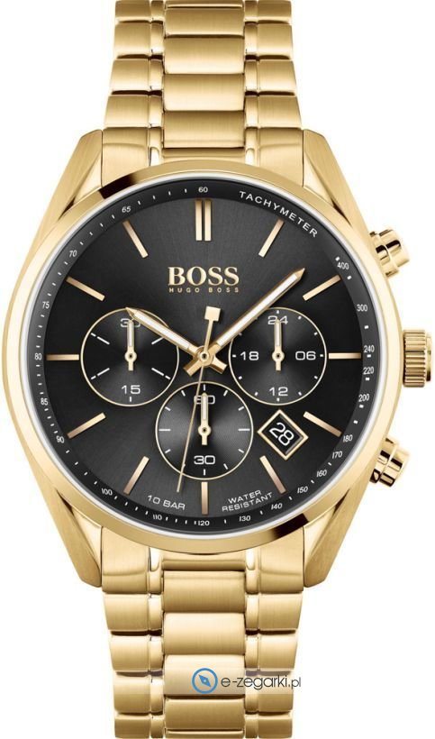 Zegarek męski 1513848 marki Hugo Boss to idealna propozycja dla osób ceniących sobie dbałość o detale jak również bezawaryjne działanie mechanizmów. Niebanalny wygląd zegarka osiągnięto m.in. poprzez cyferblat w kolorze czarnym. Zegarek ten prezentuje godzinę w formacie analogowym dzięki czemu odczyt jest bardzo łatwy. Koperta jest w kolorze złotym szeroka jest na 44 mm oraz ma grubość 12 mm - charakteryzuje się okrągłym kształtem.