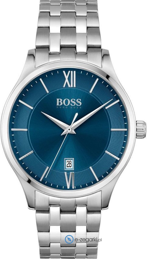 Zegarek męski 1513895 marki Hugo Boss to ciekawa pozycja dla osób ceniących sobie dbałość o szczegóły oraz bezproblemowe funkcjonowanie mechanizmów. Charakteru dodaje wysokiej klasy tarcza w kolorze niebieskim. Zaprezentowana metodą analogową bieżąca godzina jest czytelna i szybka do odczytania. Koperta w odcieniach koloru szarego szeroka jest na 41 mm oraz ma grubość 9 mm - ma okrągły kształt.