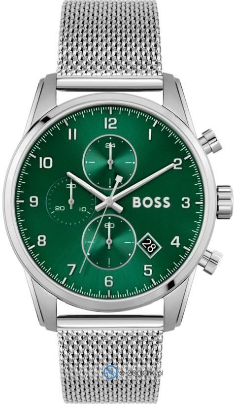 Męski zegarek Hugo Boss 1513938 to zegarek, który dzięki swemu wzornictwu zawsze będzie prezentował się dobrze. Wysokiej jakości cyferblat zegarka ozdobiono zielonym kolorem. Zegarek ten prezentuje godzinę w formacie analogowym dzięki czemu odczyt jest intuicyjny. Koperta jest w kolorze srebrnym szeroka jest na 44 mm oraz ma grubość 11 mm - w kształcie okrągłym.