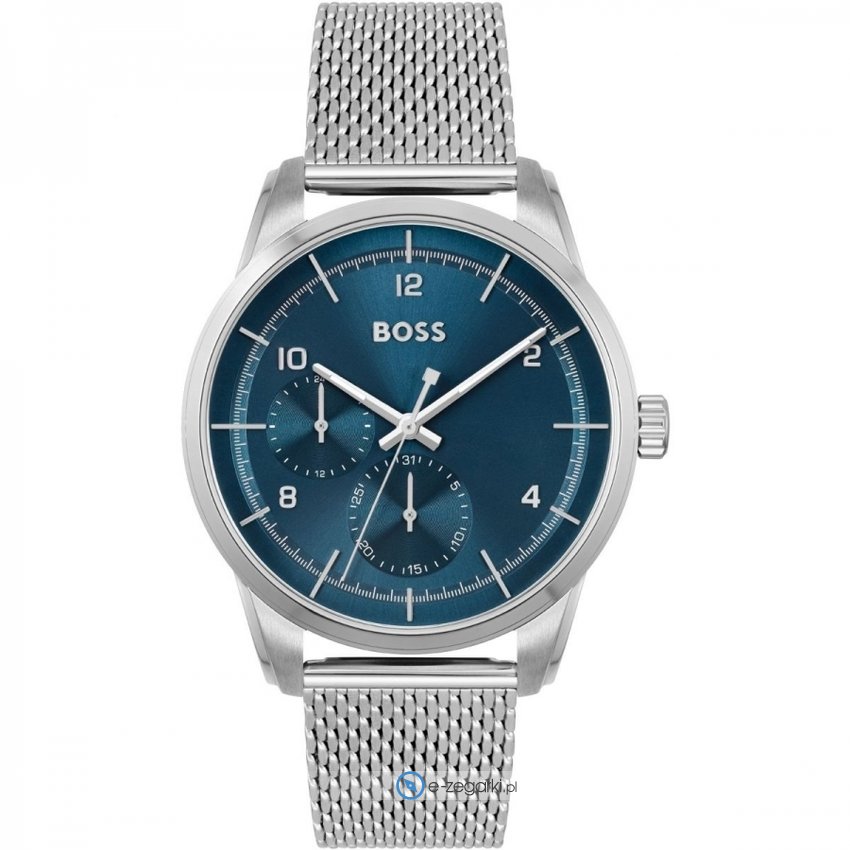 Zegarek męski 1513942 marki Hugo Boss to idealna pozycja dla ludzi ceniących sobie dbałość o szczegóły jak również sprawne funkcjonowanie mechanizmów. Styl zapewnia wysokiej klasy tarcza w kolorze niebieskim. Aktualna godzina zaprezentowana jest w sposób analogowy co bez trudu pozwala ją odczytać. Koperta w odcieniach koloru szarego szeroka jest na 42 mm - w kształcie okrągłym.