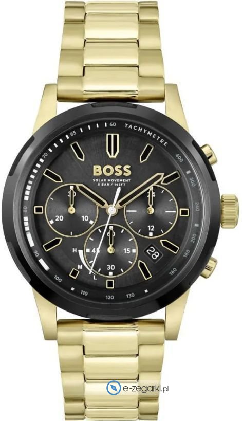 Zegarek męski 1514033 marki Hugo Boss to idealne połączenie funkcjonalności oraz modnego wzornictwa. Wysokiej trwałości cyferblat zegarka ozdobiono czarnym kolorem. Godzina pokazywana jest w sposób analogowy co bez trudu pozwala ją odczytać. Koperta została ozdobiona kolorem czarnym szeroka jest na 44 mm oraz ma grubość 12 mm - charakteryzuje się okrągłym kształtem.